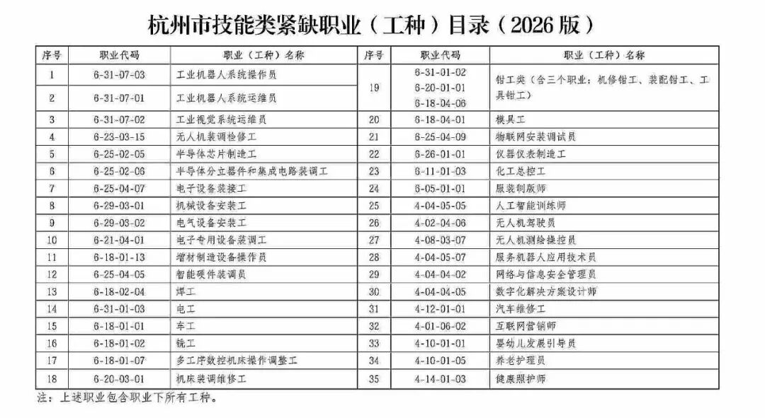 当杭州的数字经济浪潮奔涌向前,当“智造之城”的蓝图徐徐展开,一张关乎数十万职业人命运的“新地图”悄然更新——《杭州市技能类紧缺职业(工种)目录(2026版)》正式发布。